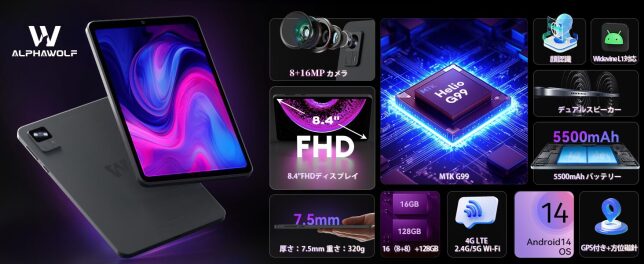 「Alphawolf A1」は、メーカー「Alphawolf」が販売する8.4インチのAndroidタブレット「APad1」のことです。A1は製品の型番であり、そのコンパクトなサイズと高性能な仕様で注目されています。