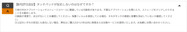 Amazonの製品ページにQ&Aでタッチパネル問題を触れている