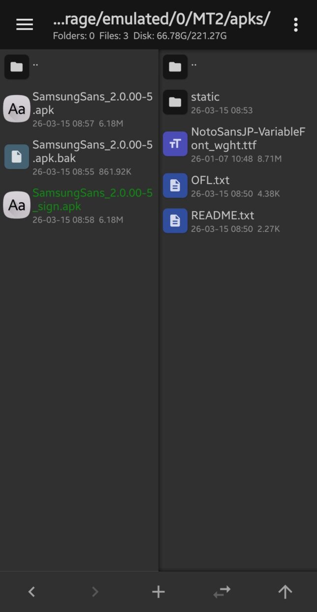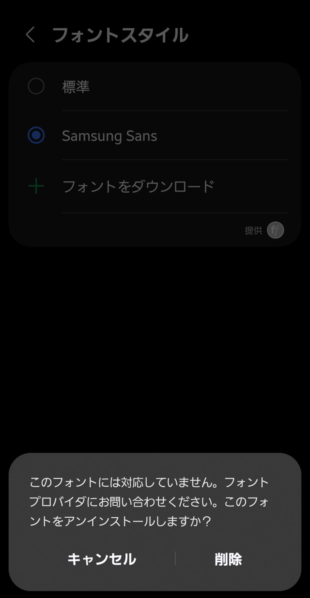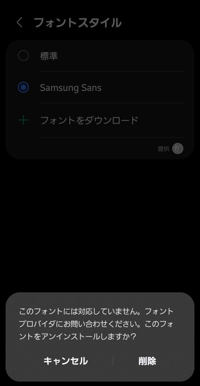 その中で無料でダウンロードできる「Samsung fonts」のAPKを引っこ抜いて、中にあるttfファイルを好きなものに変える手法があるにはあるのですが、OneUI8.5では、現時点で潰されています。